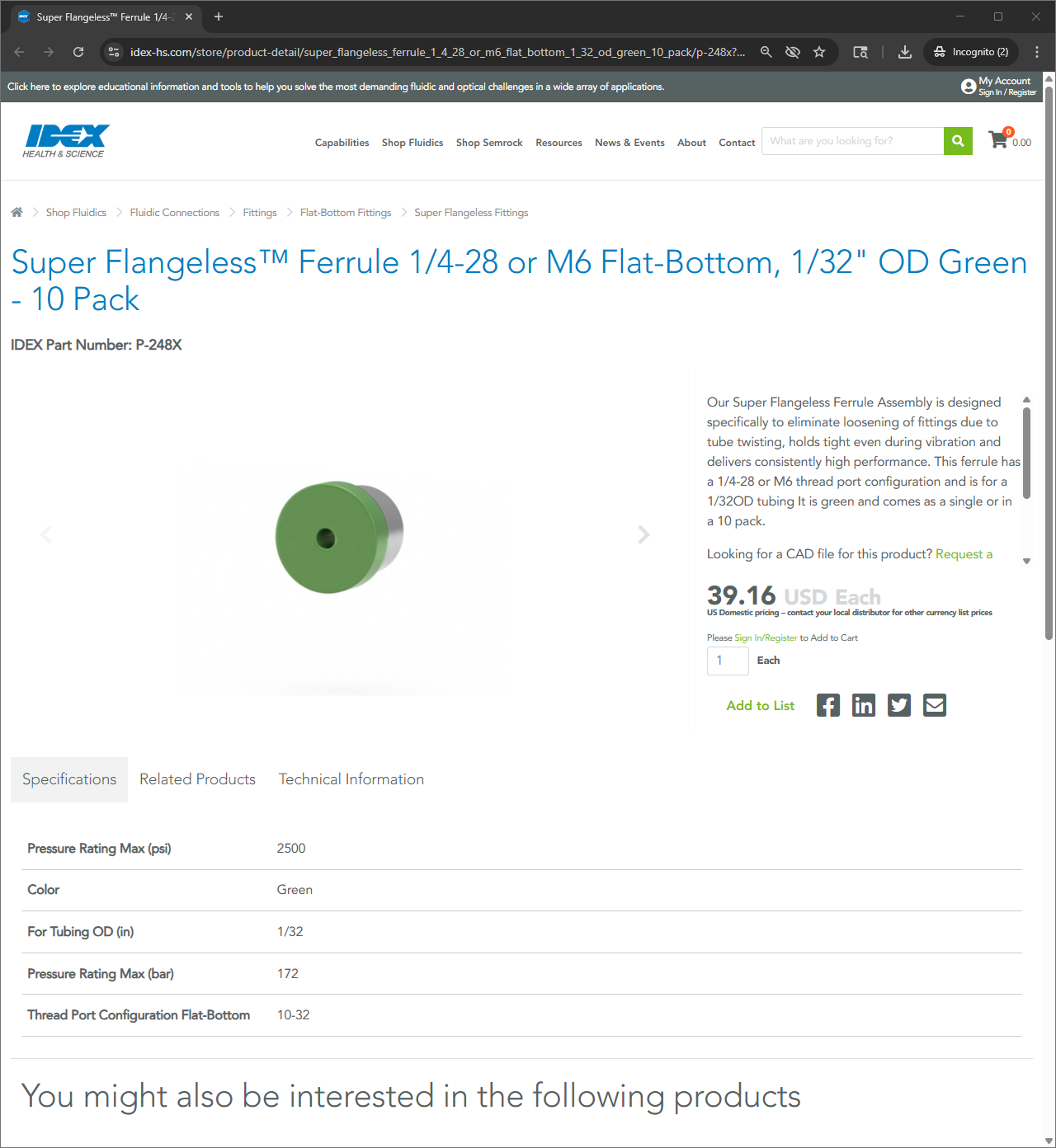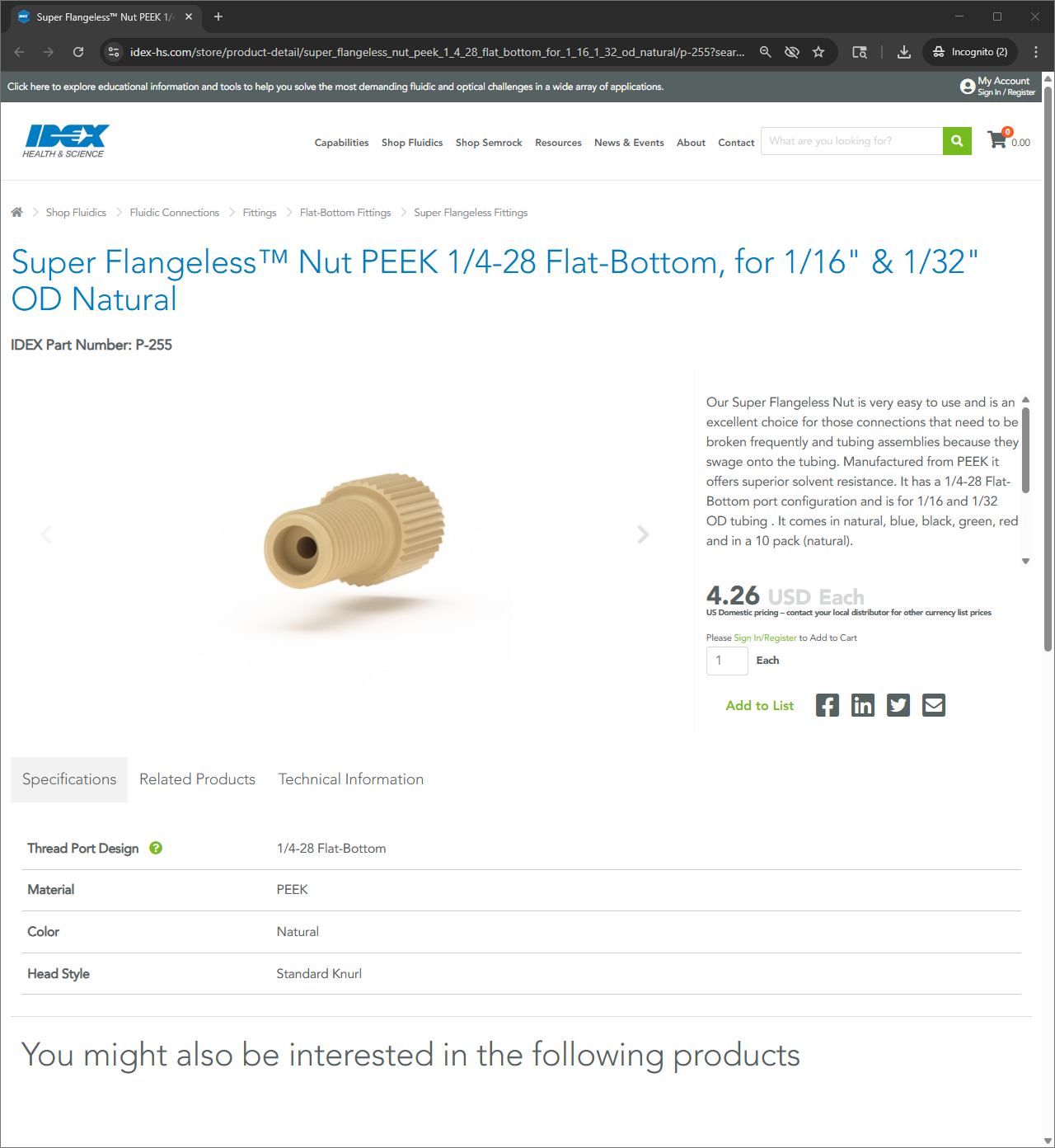 | 2 | PEEK natural (IDEX 1568XL) | 1/32 | 0.015 | 0.794 | 0.381 | clean 90° cut |